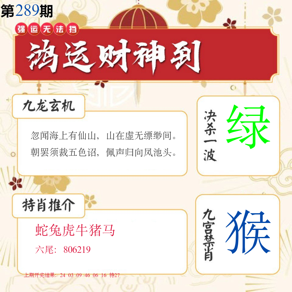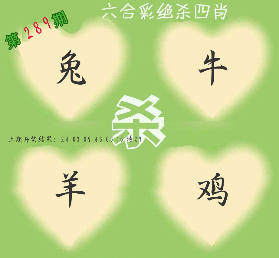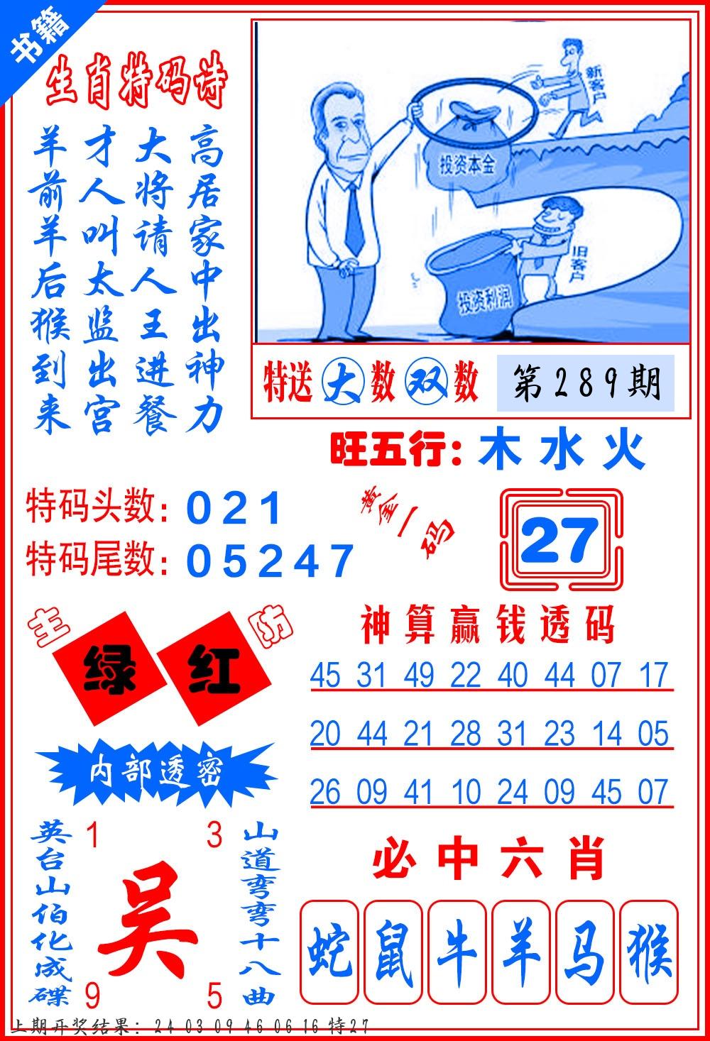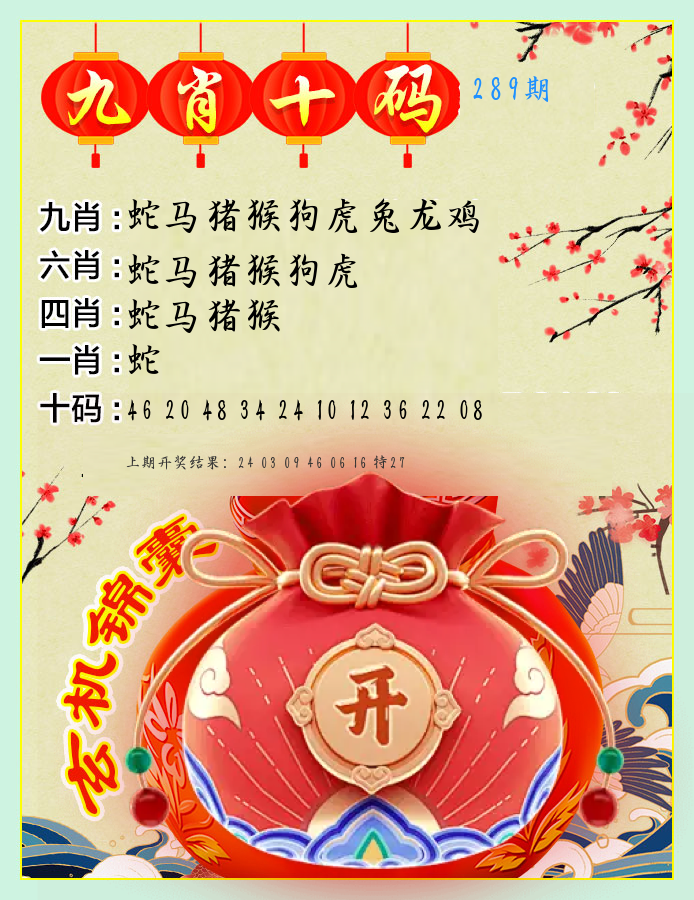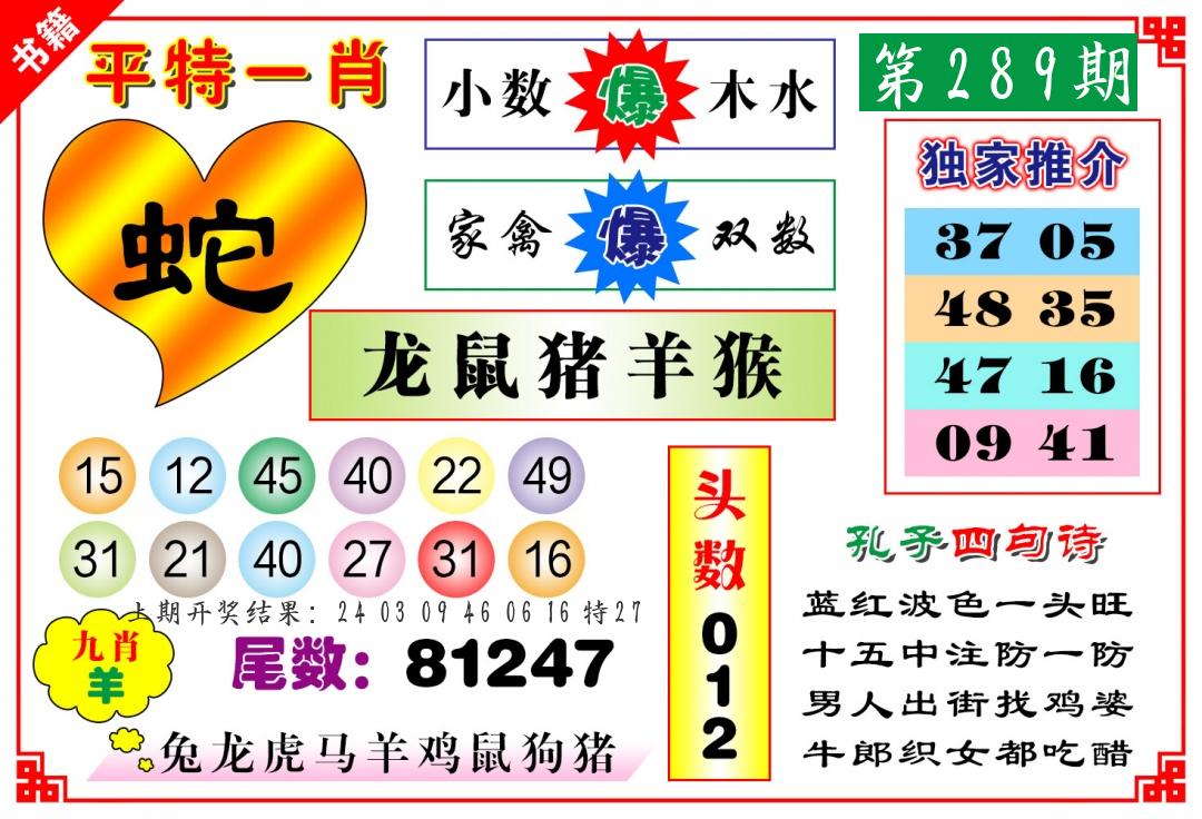 289期:九肖 | 蛇猪狗虎兔猴羊牛鼠 | 开:???? |