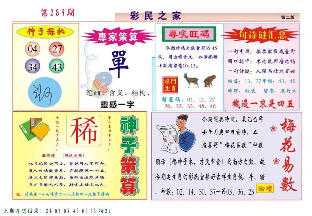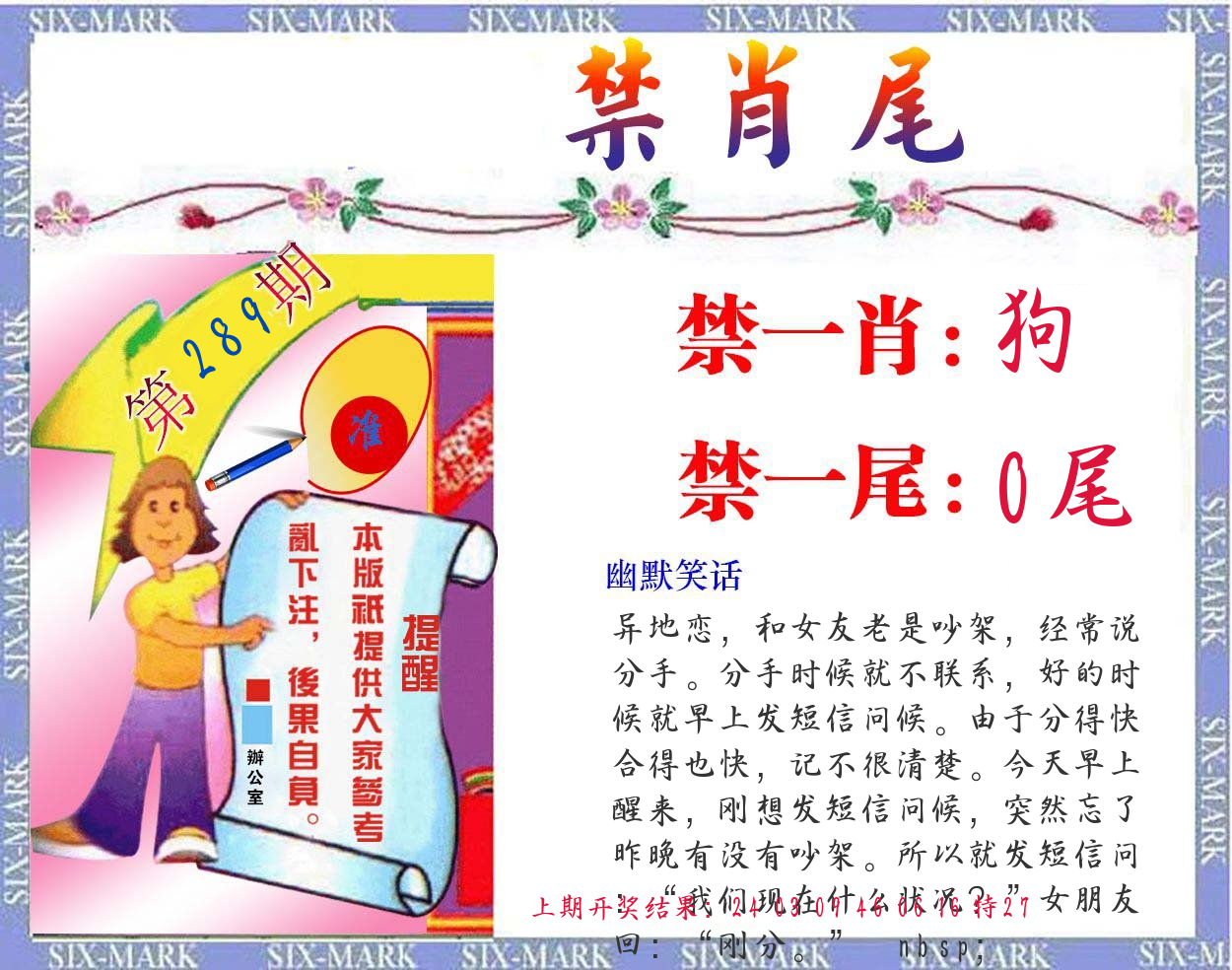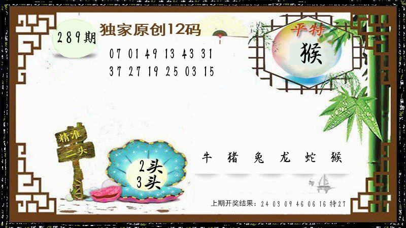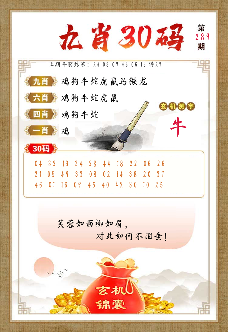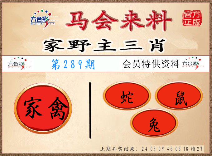 289期:九肖 | 蛇猪狗虎兔猴羊牛鼠 | 开:???? |
